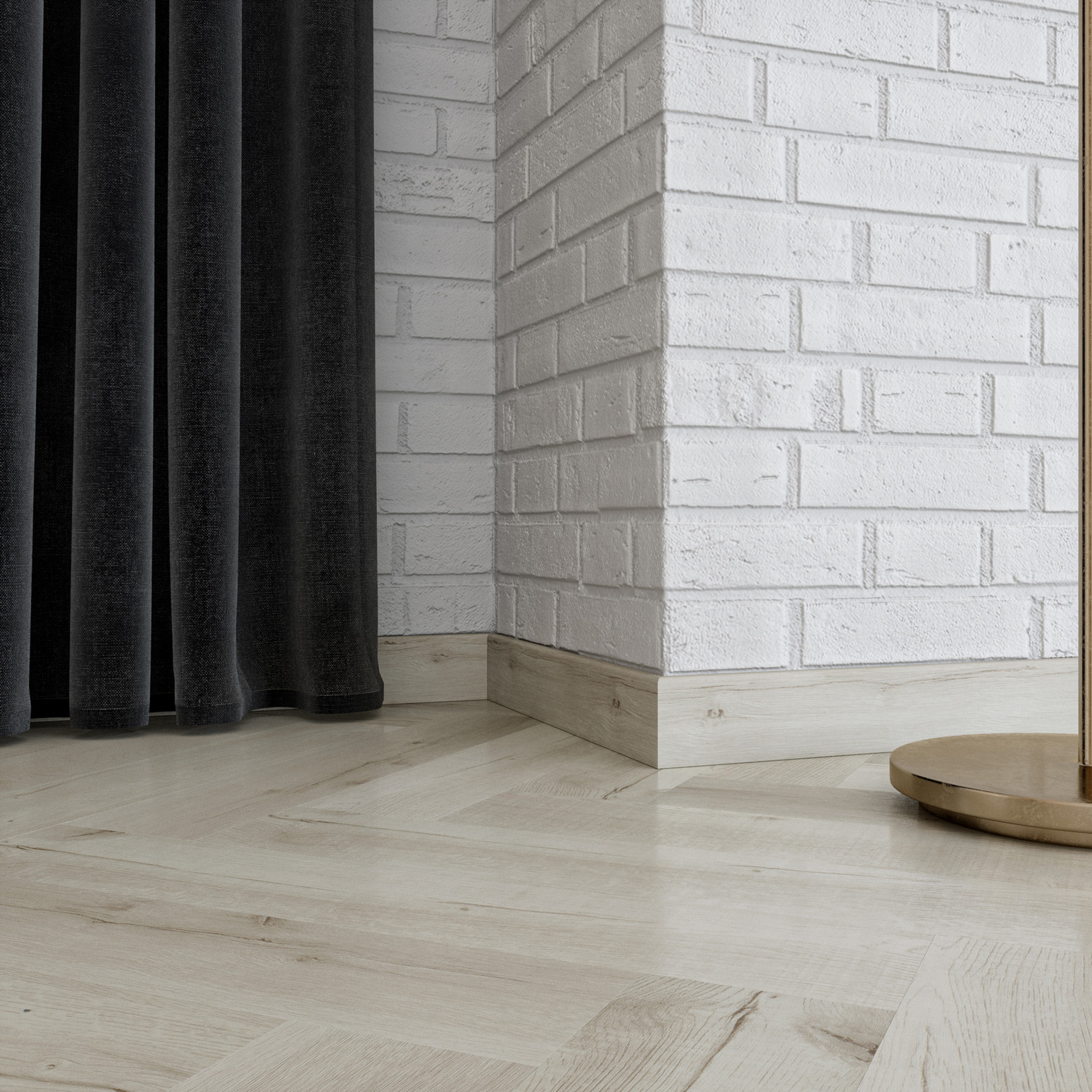 Монтаж кварцевого плинтуса прост: с помощью жидких гвоздей плинтус крепится на ровные, сухие и чистые стены, углы запиливаются. Благодаря своей гибкости плинтус Fargo можно монтировать в комнатах с нестандартной геометрией стен.