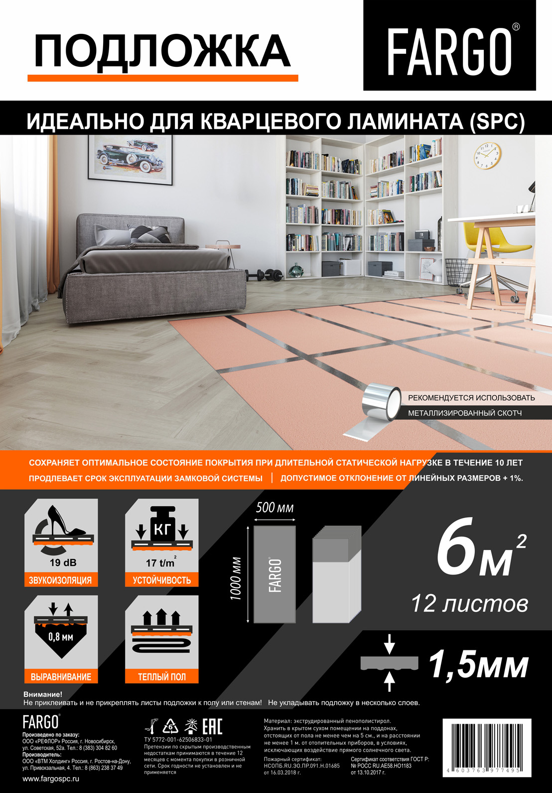 - удобная квадратура упаковки – 6 м2;